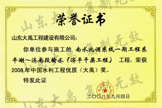 您好,歡迎訪問山東大禹水務建設集團有限公司官方網站!