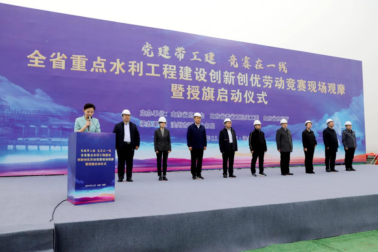 11月14日,全省重點水利工程建設創(chuàng)新創(chuàng)優(yōu)勞動競賽現(xiàn)場觀摩暨授旗啟動儀式在集團公司承建的利民水庫項目舉行。省水利廳總工程師周黎明,省農(nóng)林水工會主席張新國,省水利廳建設處處長張杰,省水利廳監(jiān)督處處長閆斌,省建安中心主任尚琎,省水利廳機關黨委三級調(diào)研員劉玉國,濱州市城鄉(xiāng)水務局黨組書記、局長潘清軍,省水利廳建設處副處長徐勝,惠民縣委副書記、縣長許健出席啟動儀式。集團公司總經(jīng)理張玉源、副總經(jīng)理李國強作為獲獎單位代表參加活動。