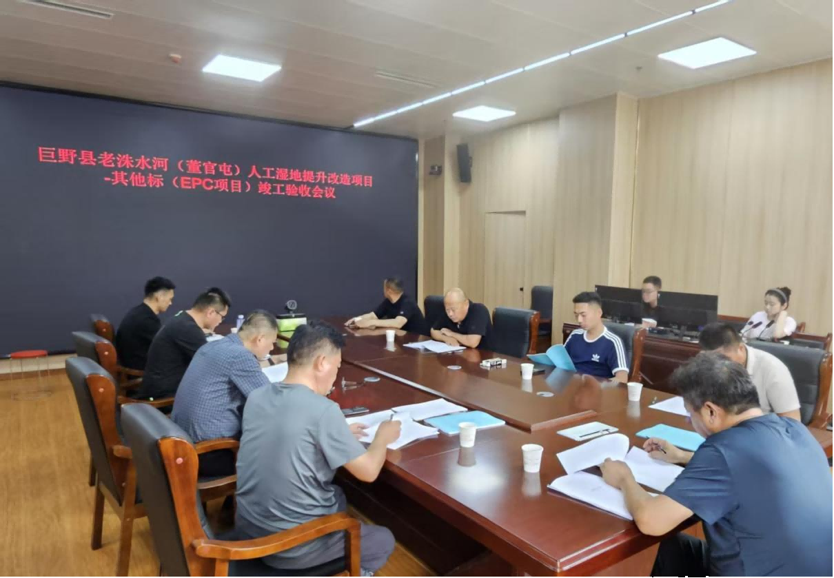 近日,集團公司承建的巨野縣老洙水河(董官屯)人工濕地提升改造工程-其他標(EPC項目)竣工驗收會議在巨野縣水務(wù)局會議室成功召開。本次驗收由巨野縣水務(wù)局組織,專家組由巨野縣水利工程服務(wù)中心、山東水工建設(shè)科技咨詢有限公司、山東省水利勘測設(shè)計院有限公司、中鴻億博集團有限公司、山東大禹水務(wù)建設(shè)集團有限公司、巨野縣昌源水務(wù)有限公司、巨野縣水利工程質(zhì)量與安全監(jiān)督站等單位的代表及特邀專家組成。