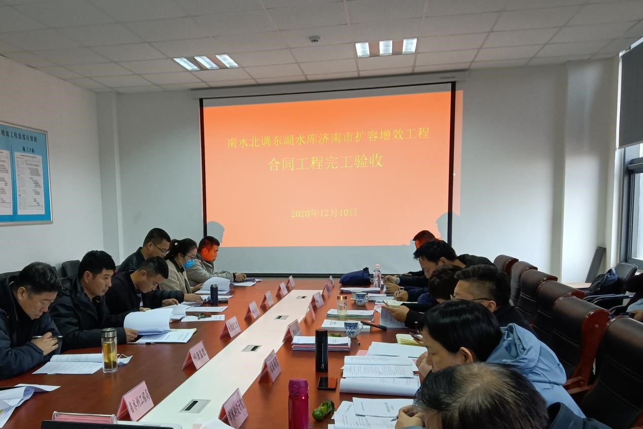 2020年12月10日上午,在唐王泵站二樓會議室召開南水北調東湖水庫濟南市擴容增效工程合同工程完工驗收會議。集團公司承建的施工2標順利通過合同工程完工驗收。