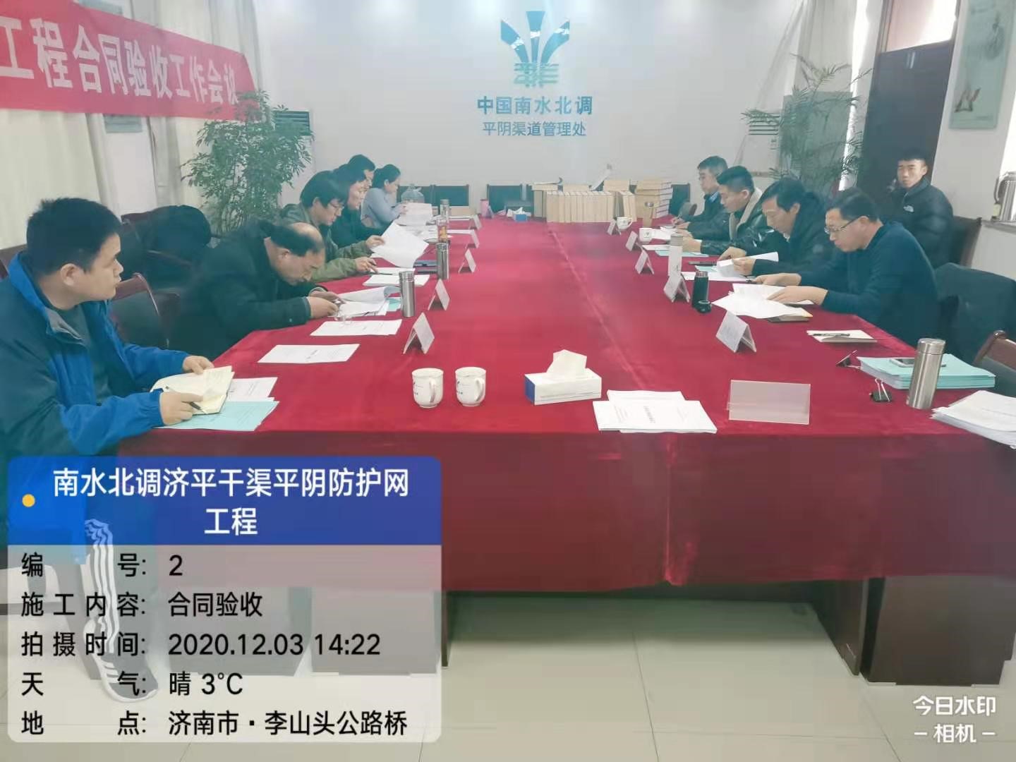 2020年12月3日,南水北調東線山東干線濟南管理局在平陰渠道管理處組織召開了南水北調東線山東濟南段濟平干渠剩余安全防護更新改造工程平陰段施工合同工程完工驗收。參加會議的有南水北調東線山東干線有限責任公司、山東潤魯工程咨詢有限公司、山東省淮海工程建設監理有限公司等單位的專家和代表,公司副總經理馬永收、總工王鵬參加驗收會議。