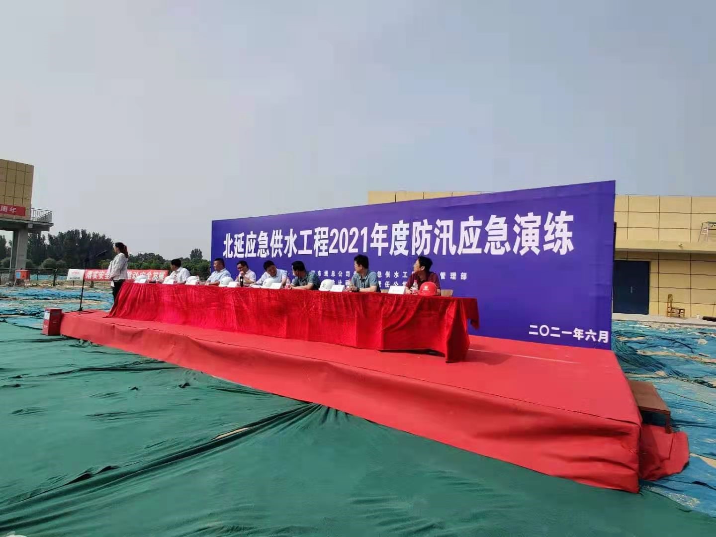 為貫徹習近平總書記關于防汛抗旱救災工作的重要指示精神,認真落實省防汛抗旱工作會議精神,2021年6月30日,北延應急供水工程2021年度防汛應急演練在集團公司承建的1標段舉行,南水北調東線總公司北延應急供水工程建管部、集團公司北延應急供水工程1標項目部及北延應急供水工程各參建單位、山東干線公司臨清渠道管理處、臨清市水利局和臨清市防汛辦均派代表參加了此次演練。