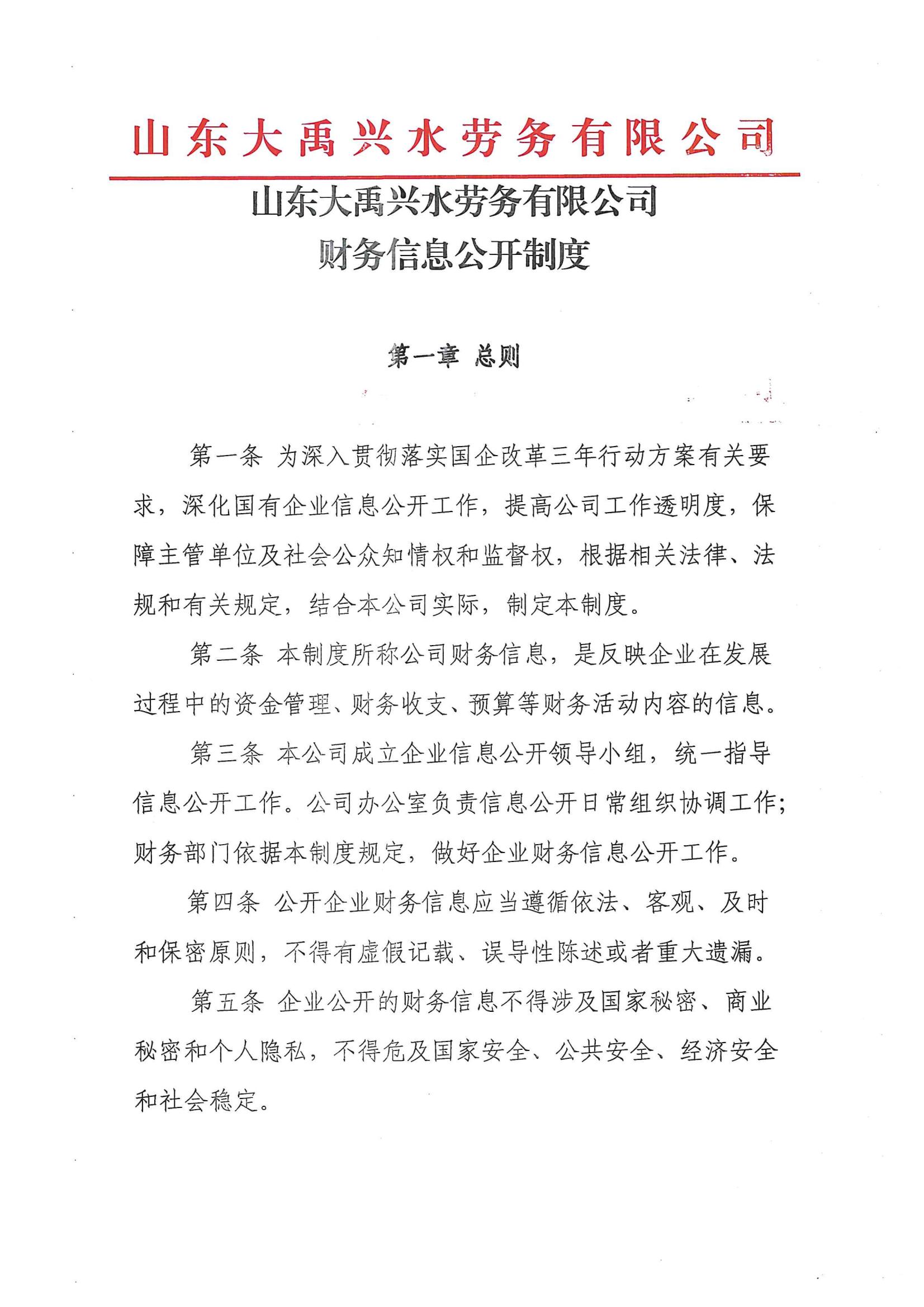 山東大禹興水勞務(wù)有限公司財務(wù)信息公開制度