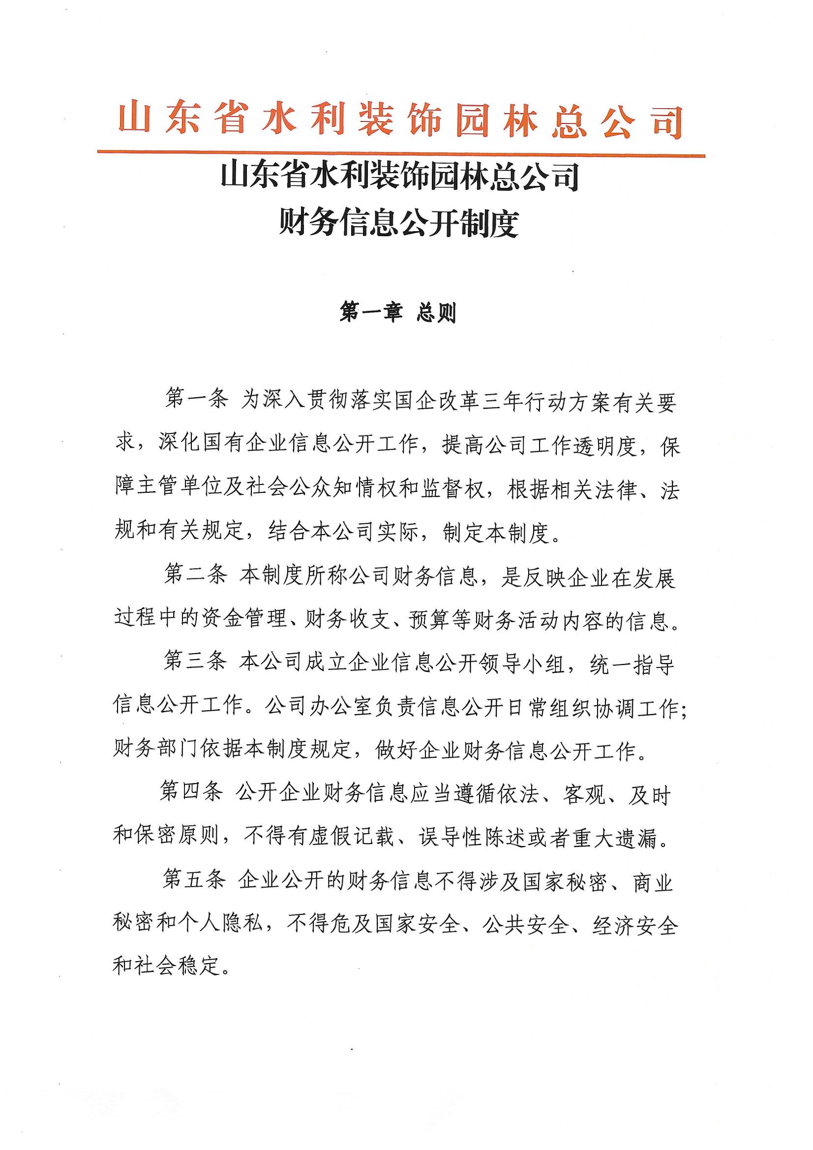 山東省水利裝飾園林總公司財務(wù)信息公開制度