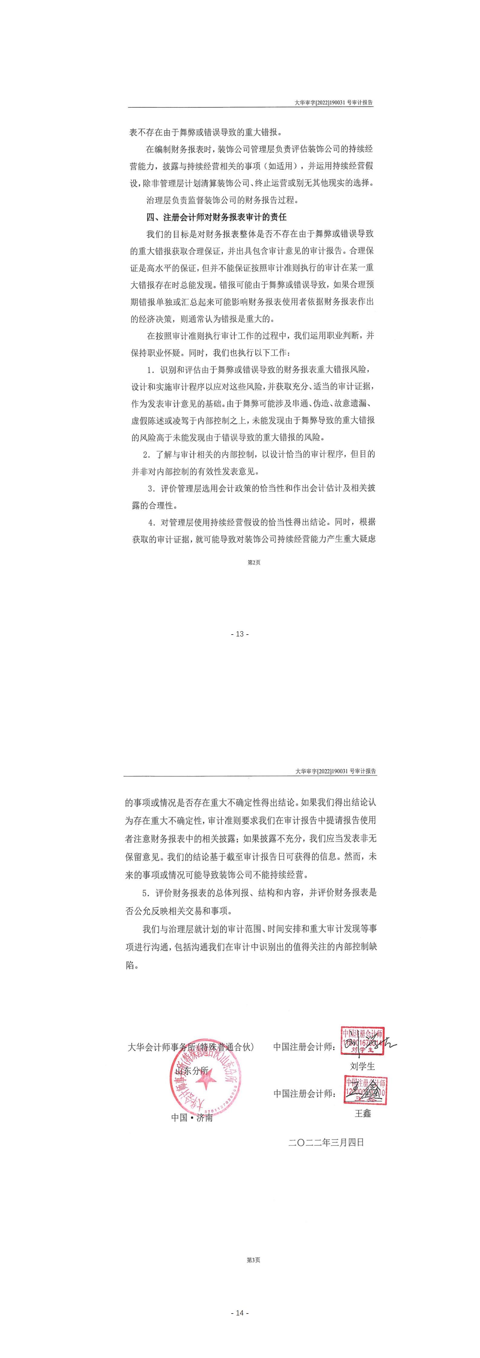 山東省水利裝飾園林有限公司2021年度財務重大信息公告